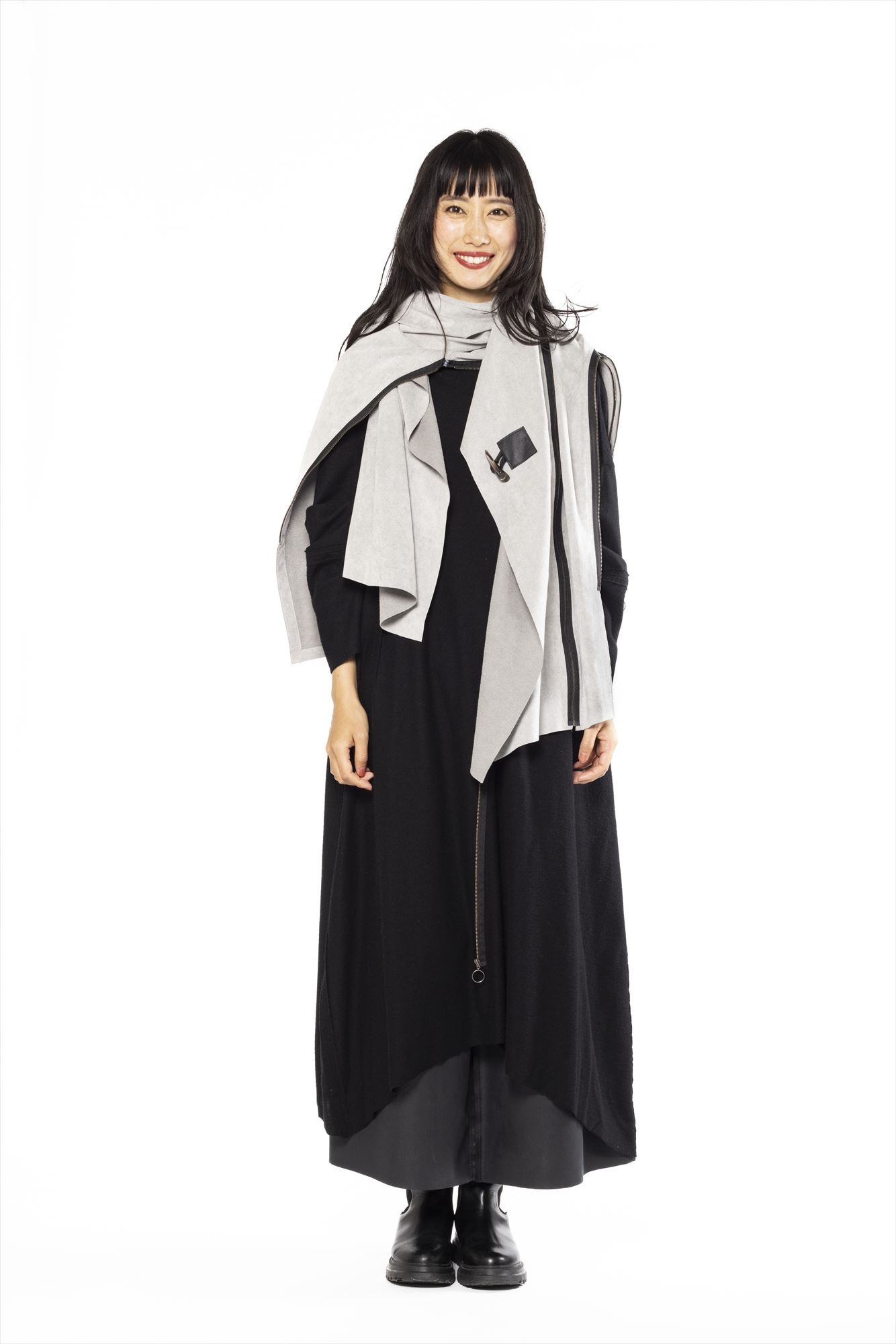 Our coat stole is a true masterpiece of wearable art, offering a chameleon-like ability to shape-shift into six distinct forms: coat, blouson, gilet, parka, one-piece, and stole. Its fold-able nature makes it the perfect travel companion, ensuring convenience wherever you go. What sets it apart are the removable option panels, granting you boundless creative freedom. With materials ranging from cotton and wool to leather and artificial leather, it’s a testament to wearable artistry.